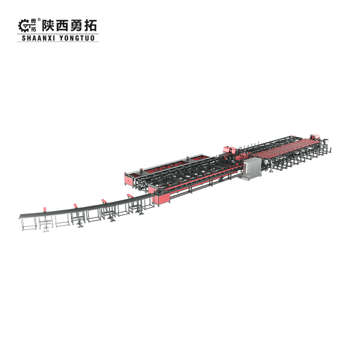 The width of the feeding chute is 600mm which can convey several pairs of bars for processing.